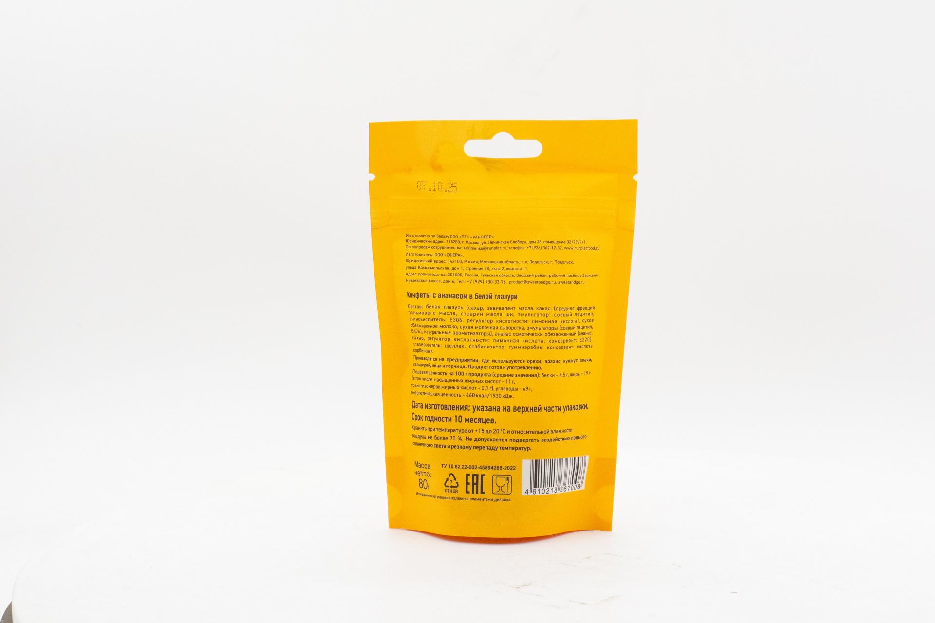 Конфеты Sweet&Go с ананасом в белой глазури (Россия) 80г0,00 руб. за штуку (в упак. 15 шт.) |